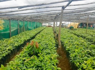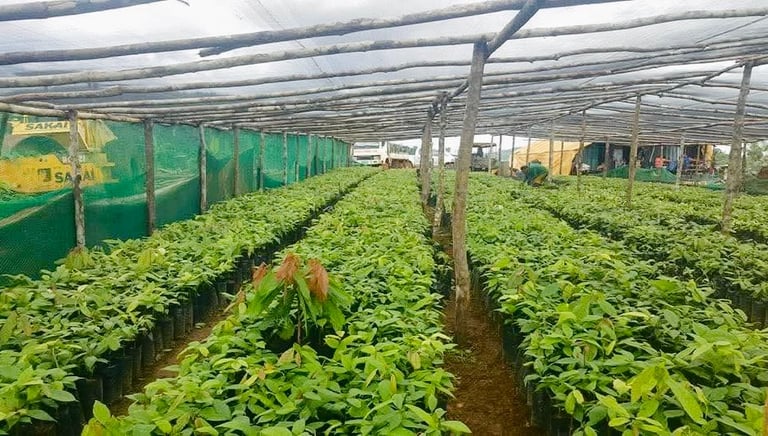Thousands of cacao seedlings are raised by the members of DIPOFA. This venture is in partnership with mining company, community and provincial government.